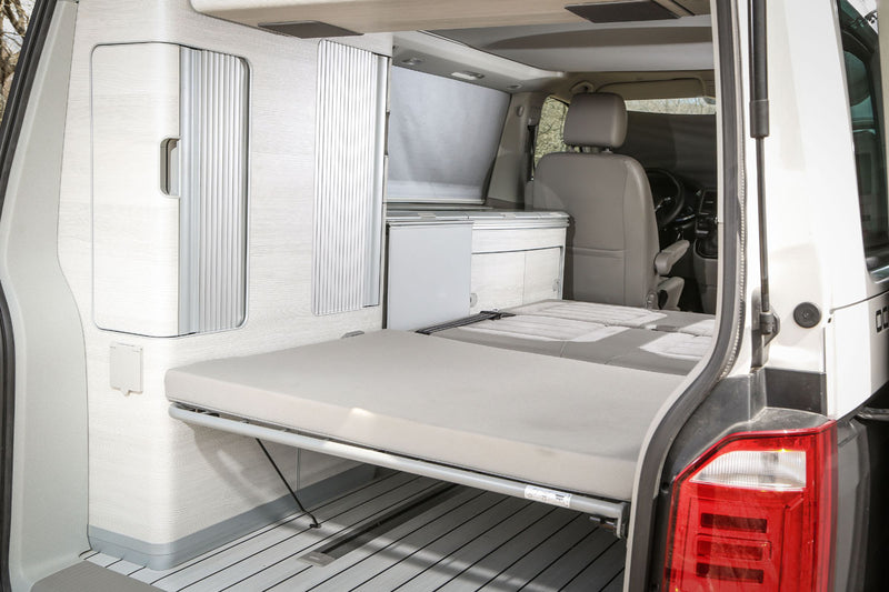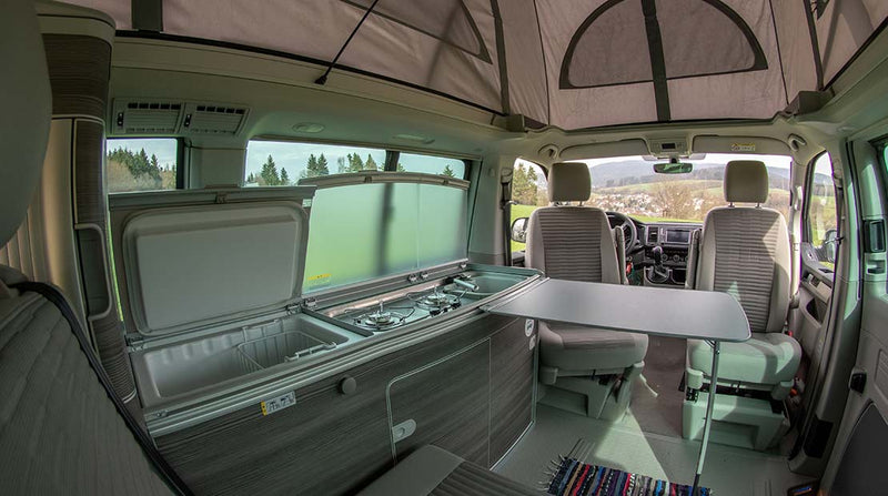 Volkswagen T6.1 California Ocean je opremljen z vsem, kar potrebujete na daljših potovanjih. Funkcije, kot so električna dvižna streha, večnamenska kuhinja in zložljiva zadnja klop, zagotavljajo vrhunsko udobje tudi na omejenem prostoru.
